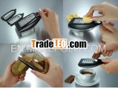Various grates for different styles of grating.This product is a set of kitchen gadgets, Multi-purpose graters,It is made of high quarity of steel and plastic. It''s really agood helper in the kitchen. By using this products, you can easilyslice the fruits or vegetables.